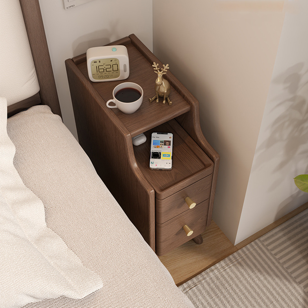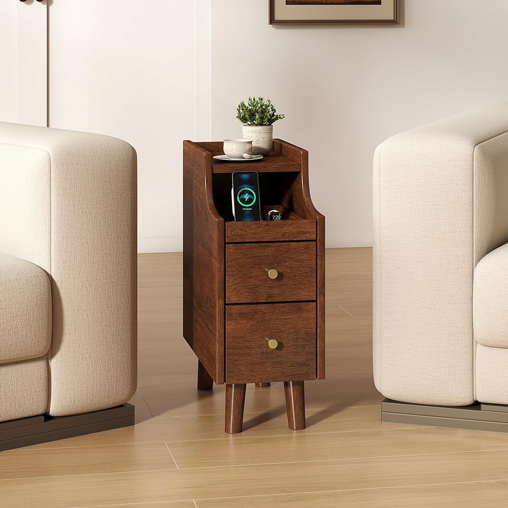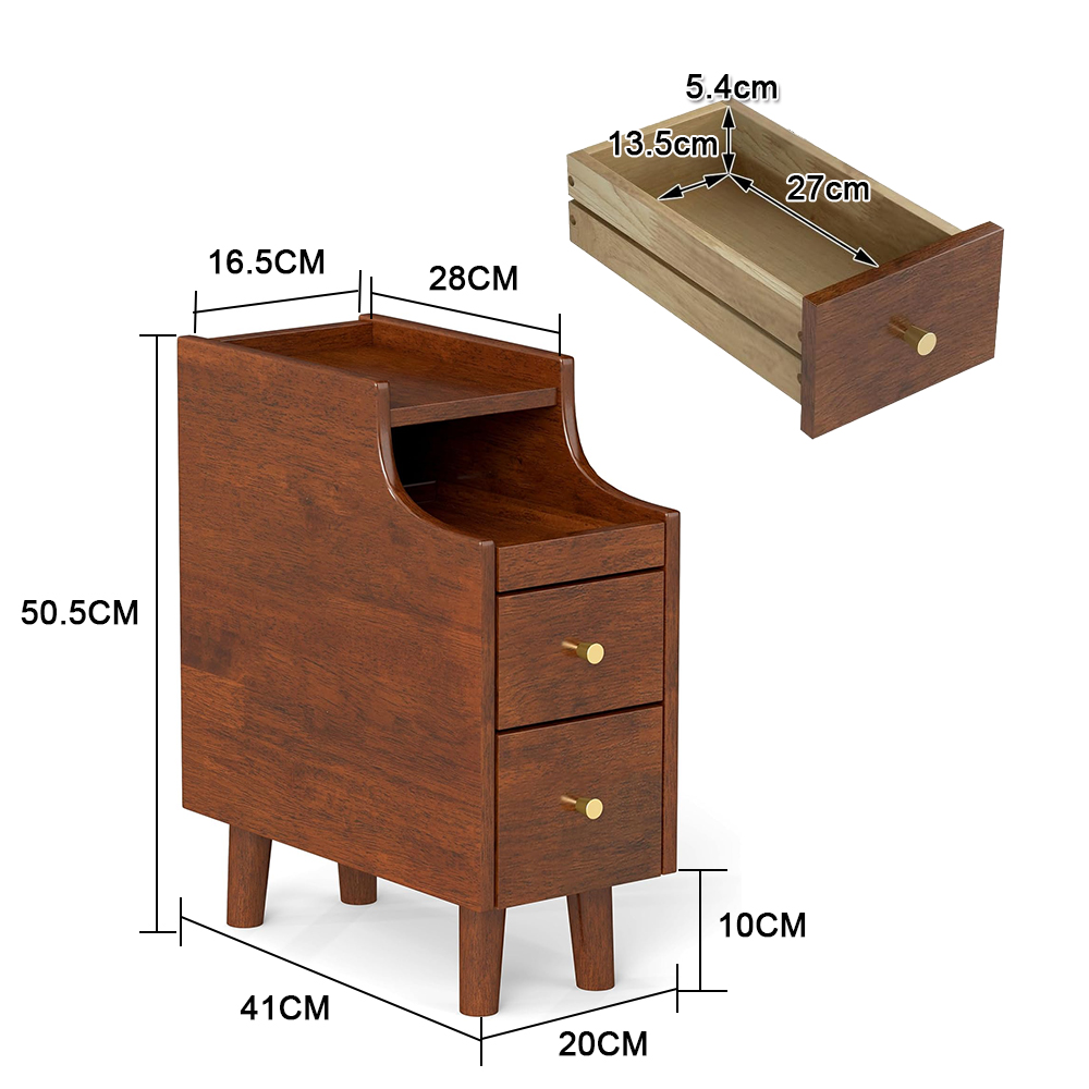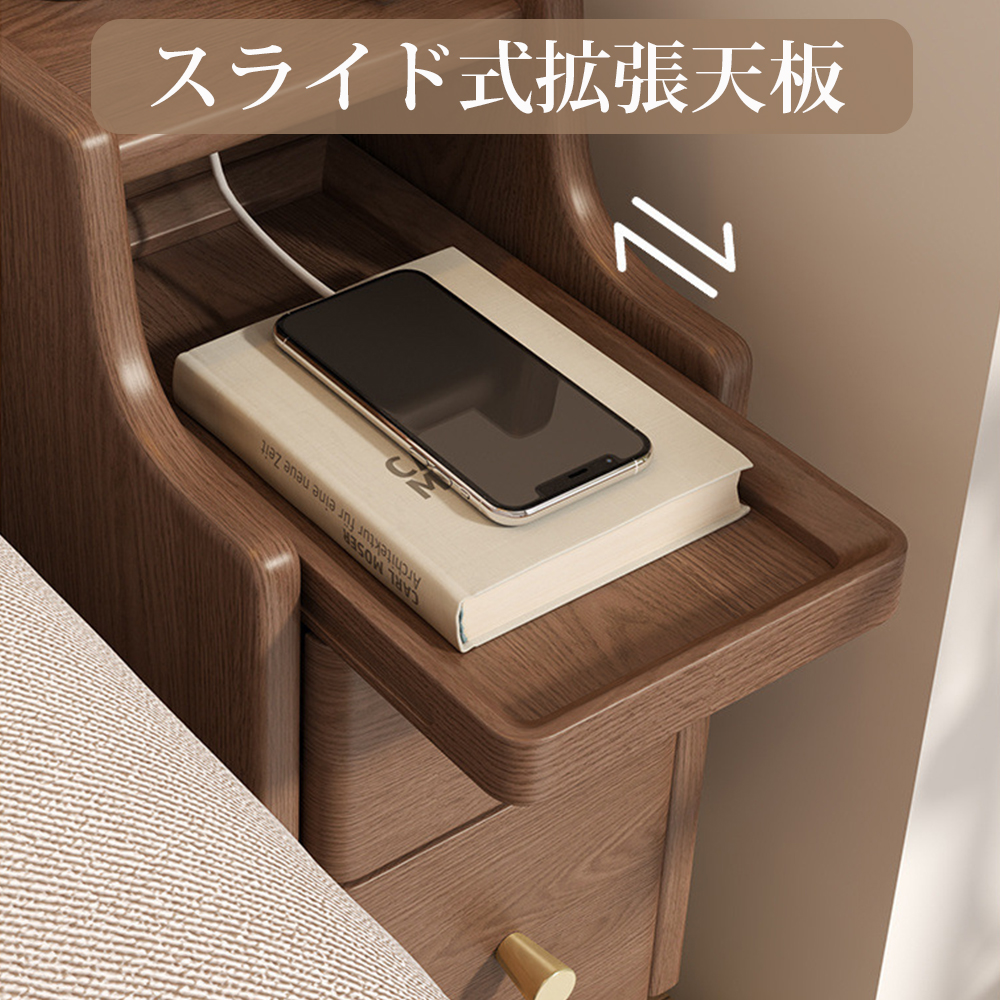 ナイトテーブル スリム サイドテーブル ベッドサイドテーブル 引き出し付き ベッド横 木製 省スペース 配線孔つき おしゃれ 無垢材 小物収納 コンパクト 寝室 ベッド周り収納 コーヒーテーブル 完成品 組立不要