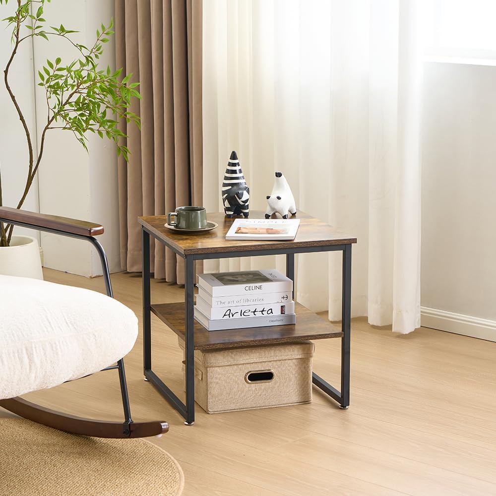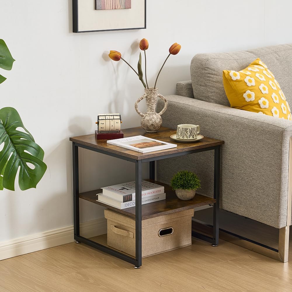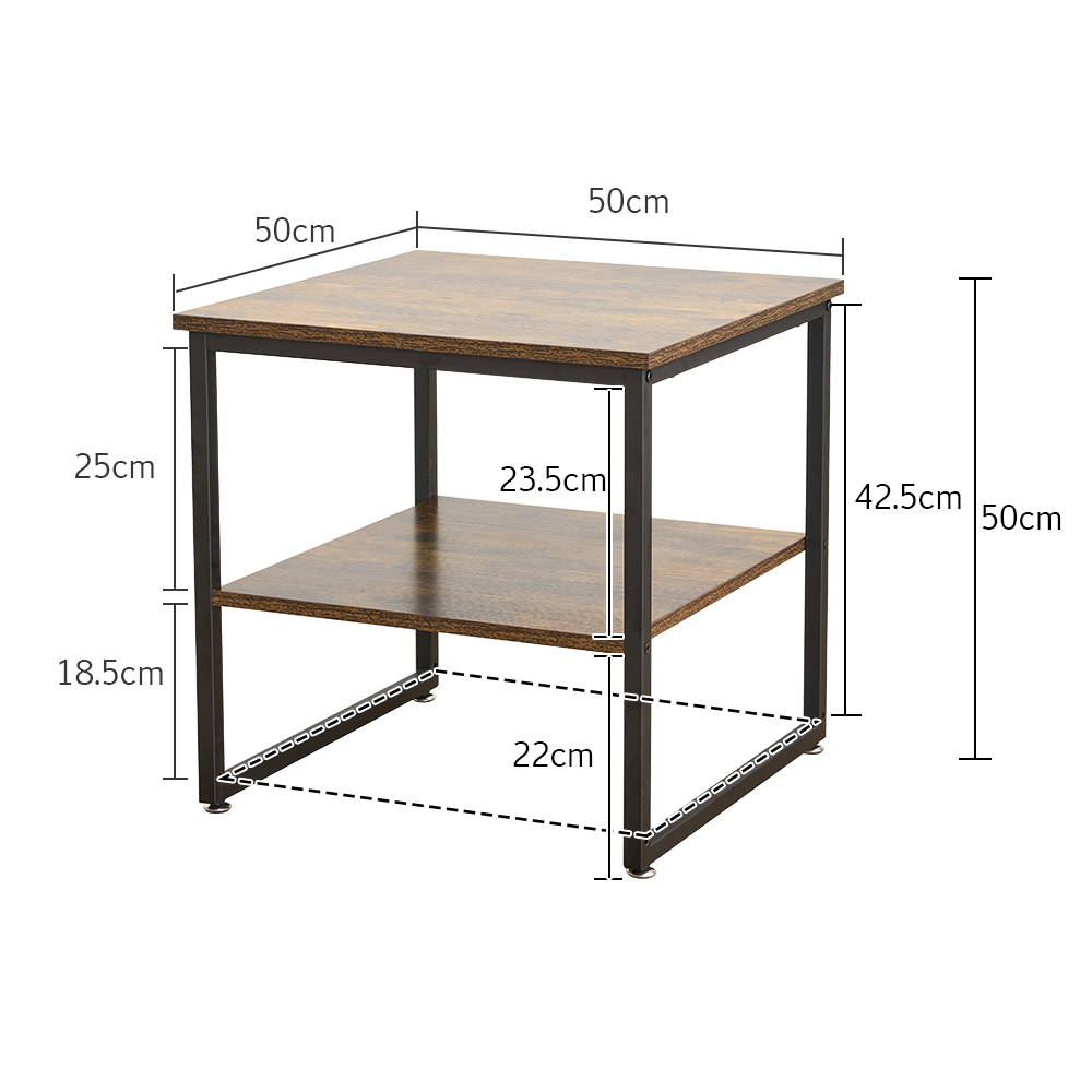 ローテーブル サイドテーブル 多機能 幅50X奥行50cm ベッドサイドテーブル プリンタラック 正方形 小型冷蔵庫ラック ナイトテーブル 調節可能な収納棚付き
