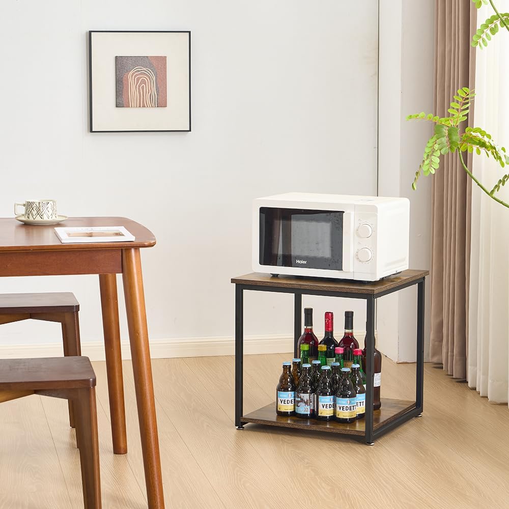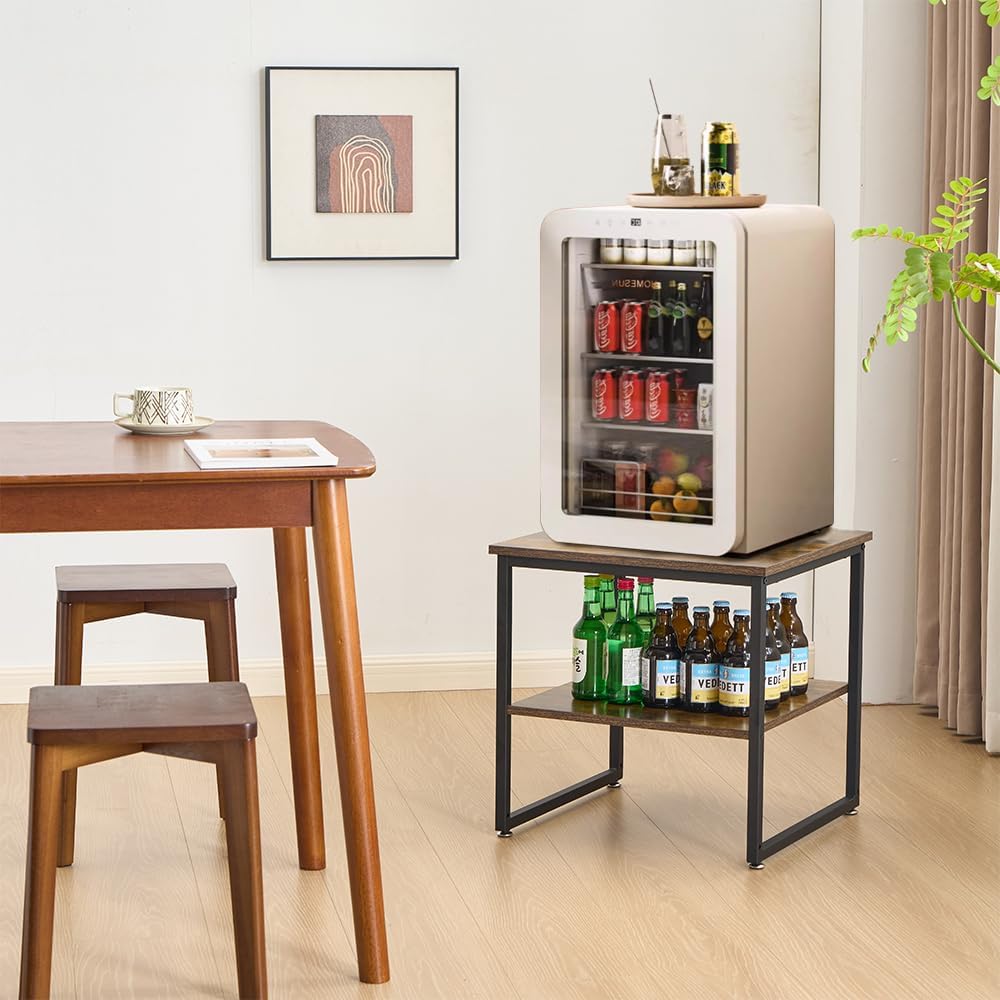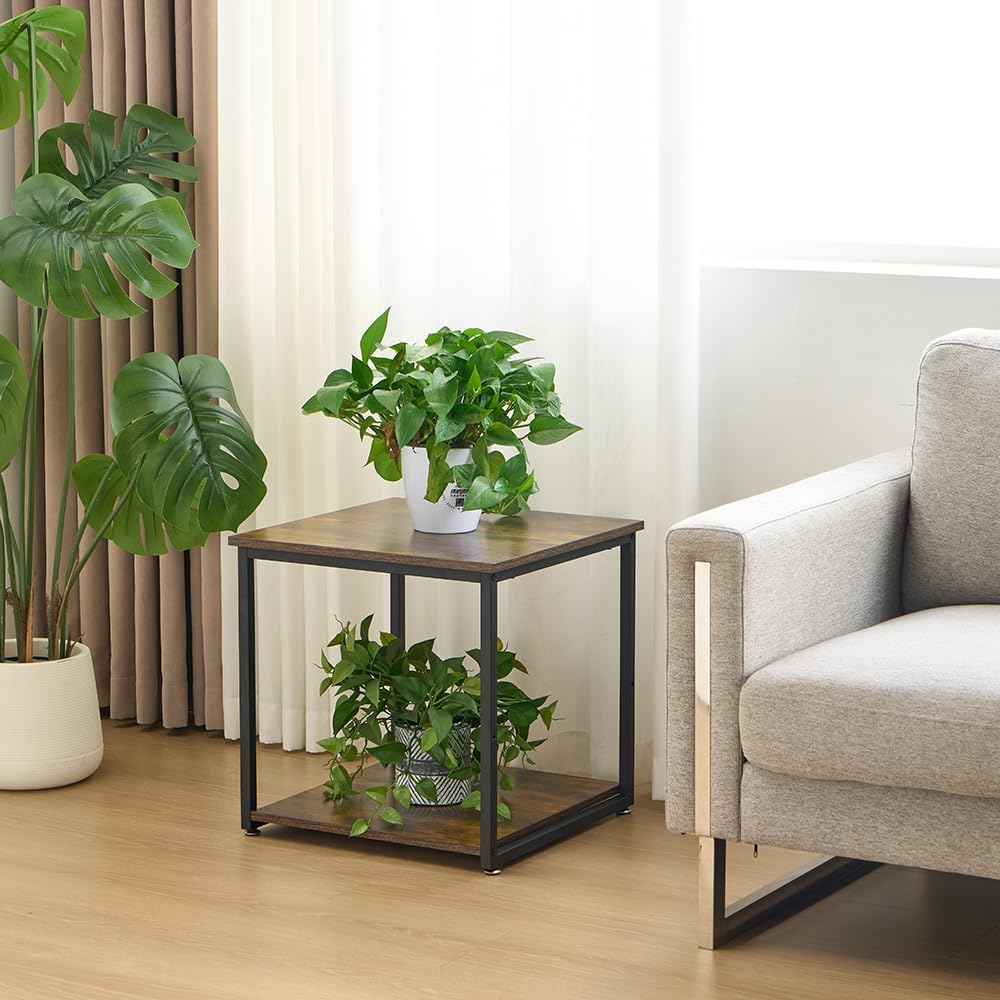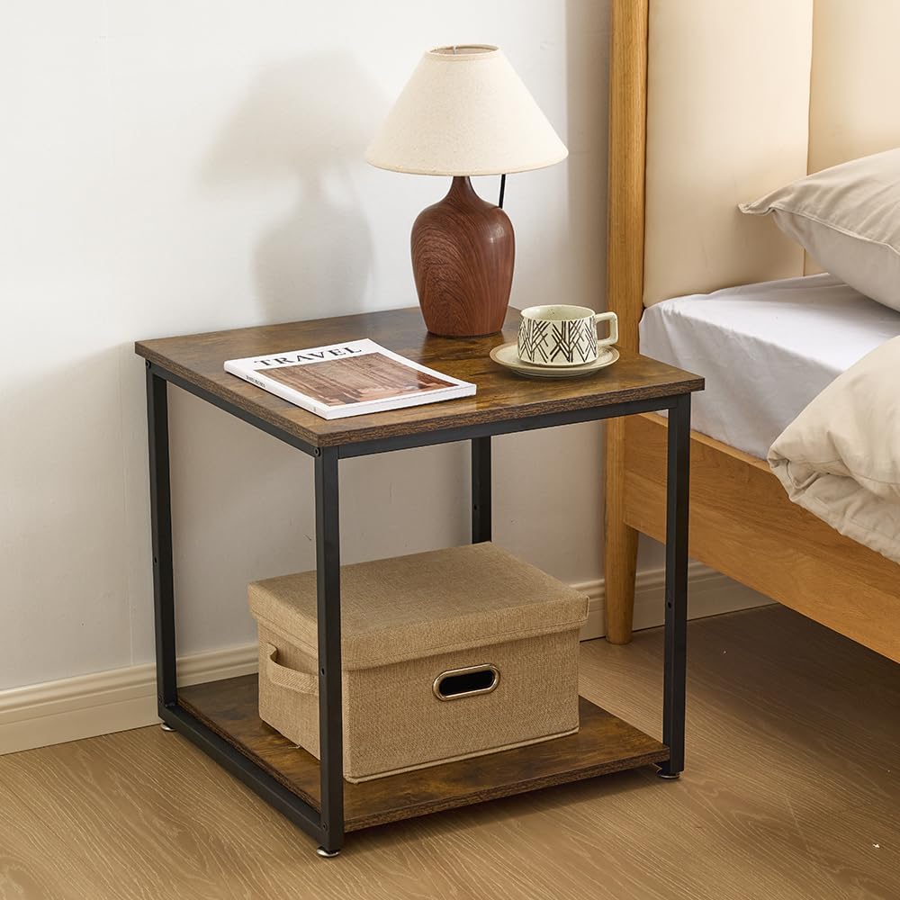 ローテーブル サイドテーブル 多機能 幅50X奥行50cm ベッドサイドテーブル プリンタラック 正方形 小型冷蔵庫ラック ナイトテーブル 調節可能な収納棚付き