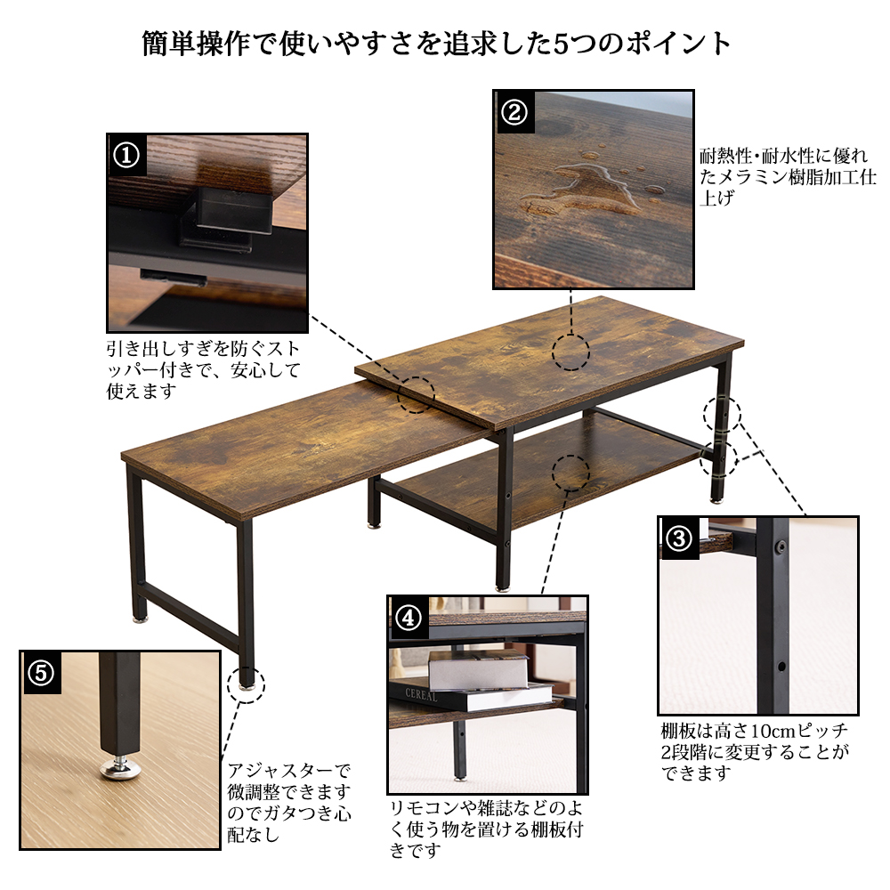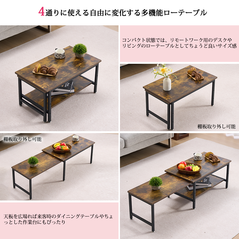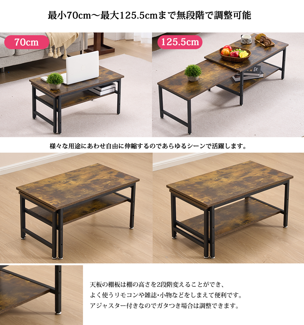 テーブル 幅70 センターテーブル 伸長式センターテーブル 伸縮式 幅70~125.5 伸張式 リビングテーブル ローテーブル 伸ばせる おしゃれ