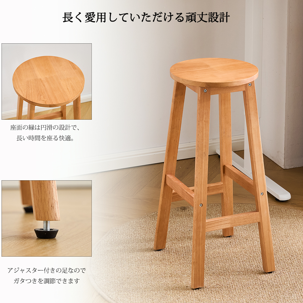 カウンタースツール 天然木 2脚セット ハイスツール カントリー チェア ウッドチェア チェアー イス 椅子 いす おしゃれ ナチュラル アジアン ウッド シンプル アンティーク モダン キッチン ダイニング 木製 丸椅子 カウンターチェア